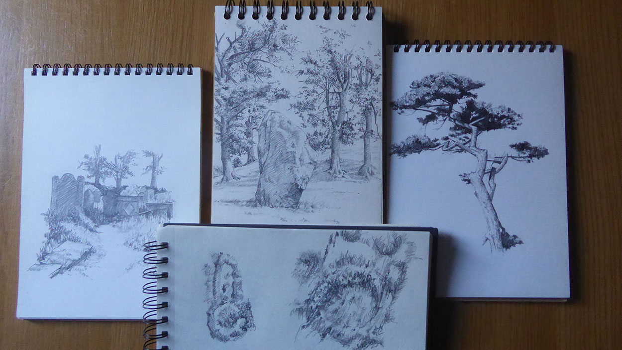 Drawing and sketching in the landscape is the foundation of Richard’s work. Some drawings are simply to capture a moment and others are concious preparation for a new print. Each sketchbook is a visual diary of his work.